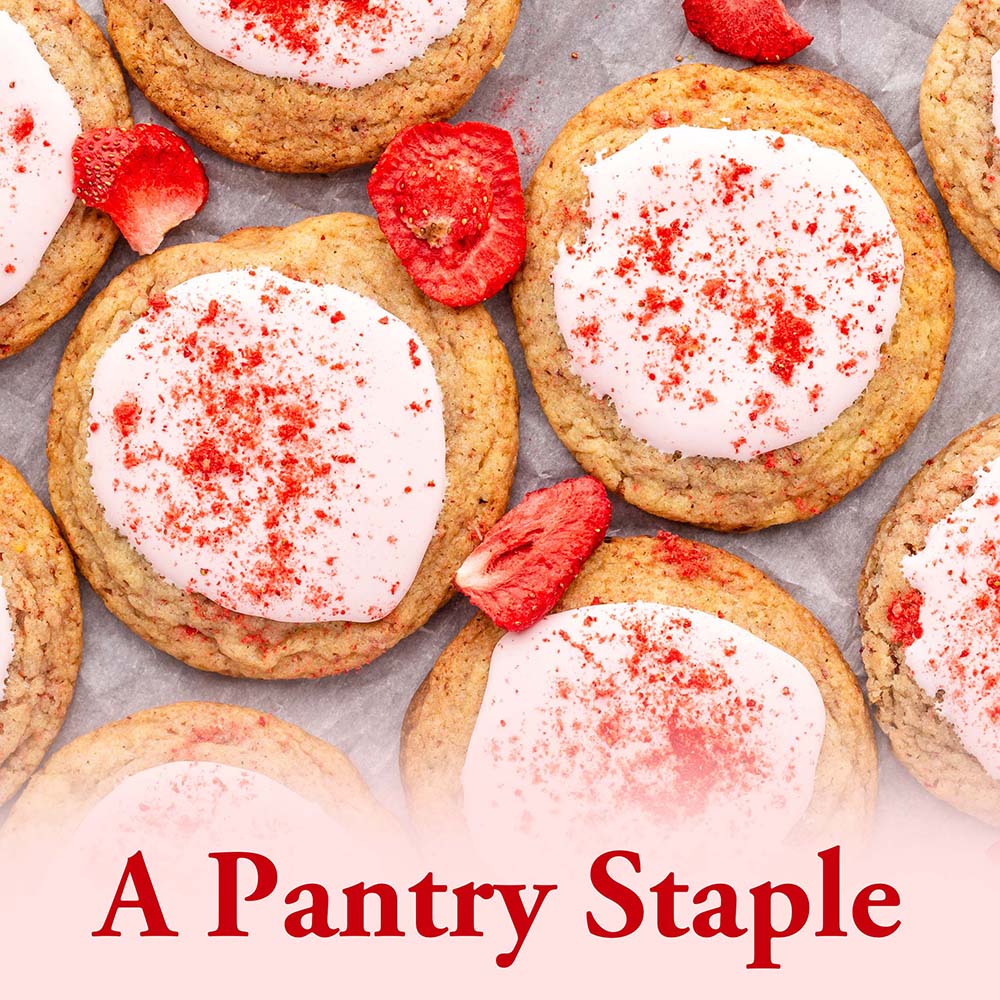 Add the sweet, wholesome flavor of freshly picked strawberries to baked goods, icings, glazes, and drinks with Ann Clark Strawberry Powder. Made from 100% all-natural freeze-dried strawberries preserved at the height of freshness, this powder delivers the fruity flavors of strawberries in a shelf-stable powder. Add to baked goods like macarons, scones, and cookies for a sweet fruity twist, or use in drinks or as a flavored sugar rim to elevate any cocktail. Strawberry powder can also be added to icings, overnight oats recipes, or smoothies for additional lusciously sweet strawberry flavor – with no added sugar. Ann Clark Strawberry Powder is convenient and easy to use, and offers fresh, concentrated strawberry flavor in a long-lasting powder form.