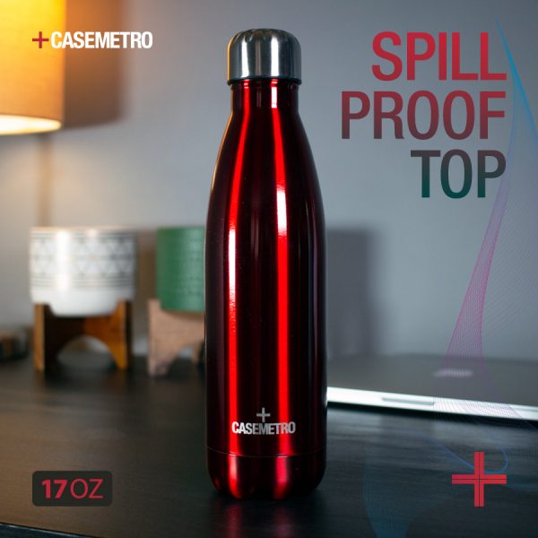 17 oz vacuum insulated double wall narrow mouth bottle. Keep your favorite beverage hot or cold in style with this leak proof bottle by CaseMetro. Ships in individual gift boxes.